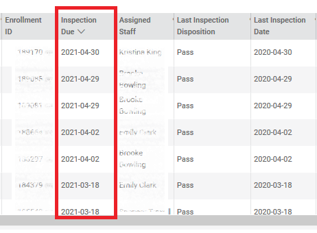 You can sort each tile on the report by the client name, personal ID, Inspection Due date, or any other column located on the tile by clicking on that tile.