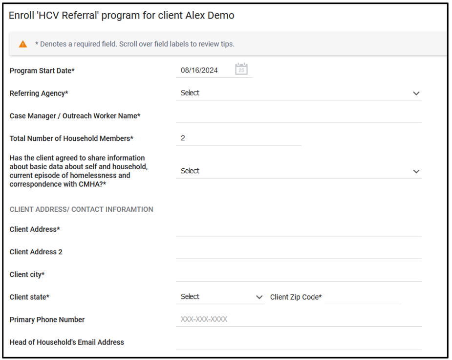 Entering HCV Referrals into Clarity