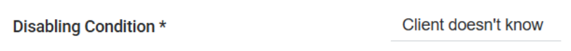 Some conditions are automatically considered Disabling Conditions such as HIV – Aids and developmental disabilities. Other conditions are not always marked as disabling. An error box will appear anytime “yes” is the only acceptable answer.